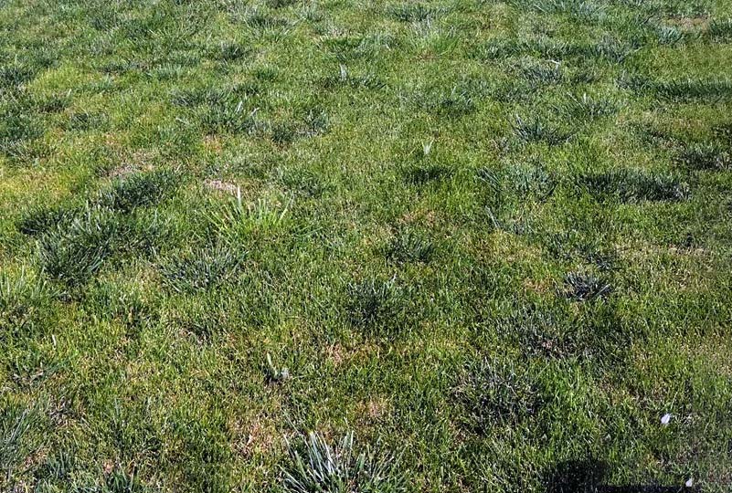 與草地早熟禾和多年生黑麥草相比,葦狀羊茅依然略顯粗糙和高大,混播時必須以葦狀羊茅為主。葦狀羊茅的比例夠大,才能在草坪中均勻分布,形成整齊美觀的景觀效果。如果葦狀羊茅的比例太少,一叢叢零星分布的葦狀羊茅就會變得更加粗大,草坪高低不平,不僅難看,也沒有使用價值(下圖)。